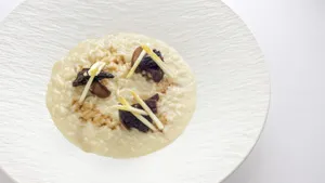 Delicious Prawn And Celery Risotto Served On A Plate Wallpaper