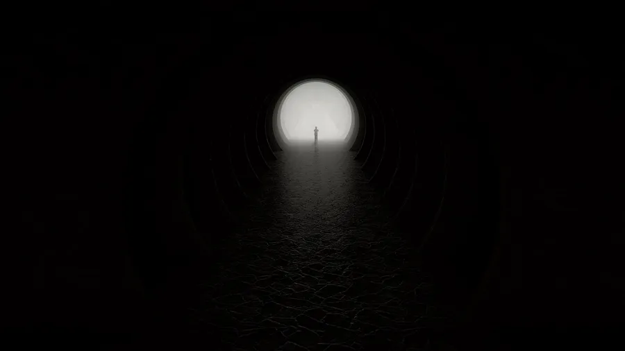Departure Dark Tunnel Bright Entrance Silhouette Wallpaper