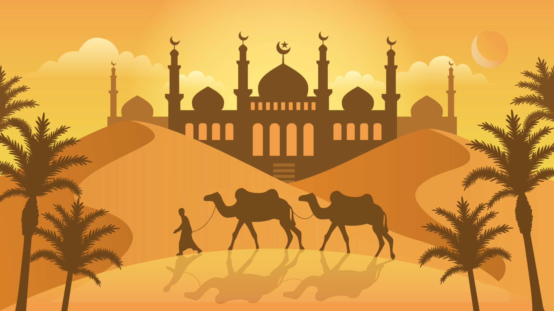 Desert Caravan Silhouette Mosque Background Wallpaper