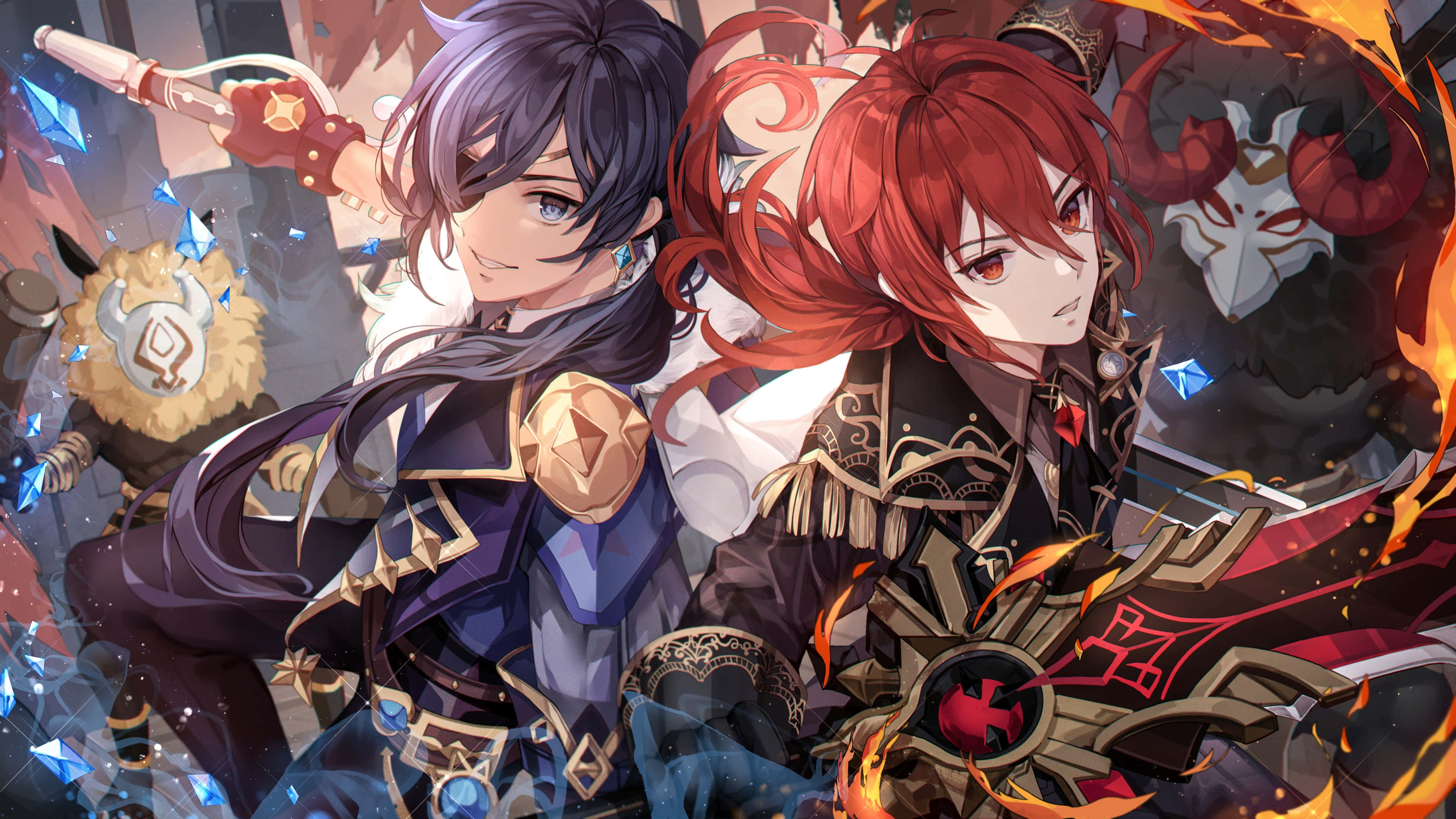 Diluc With Other Characters Wallpaper