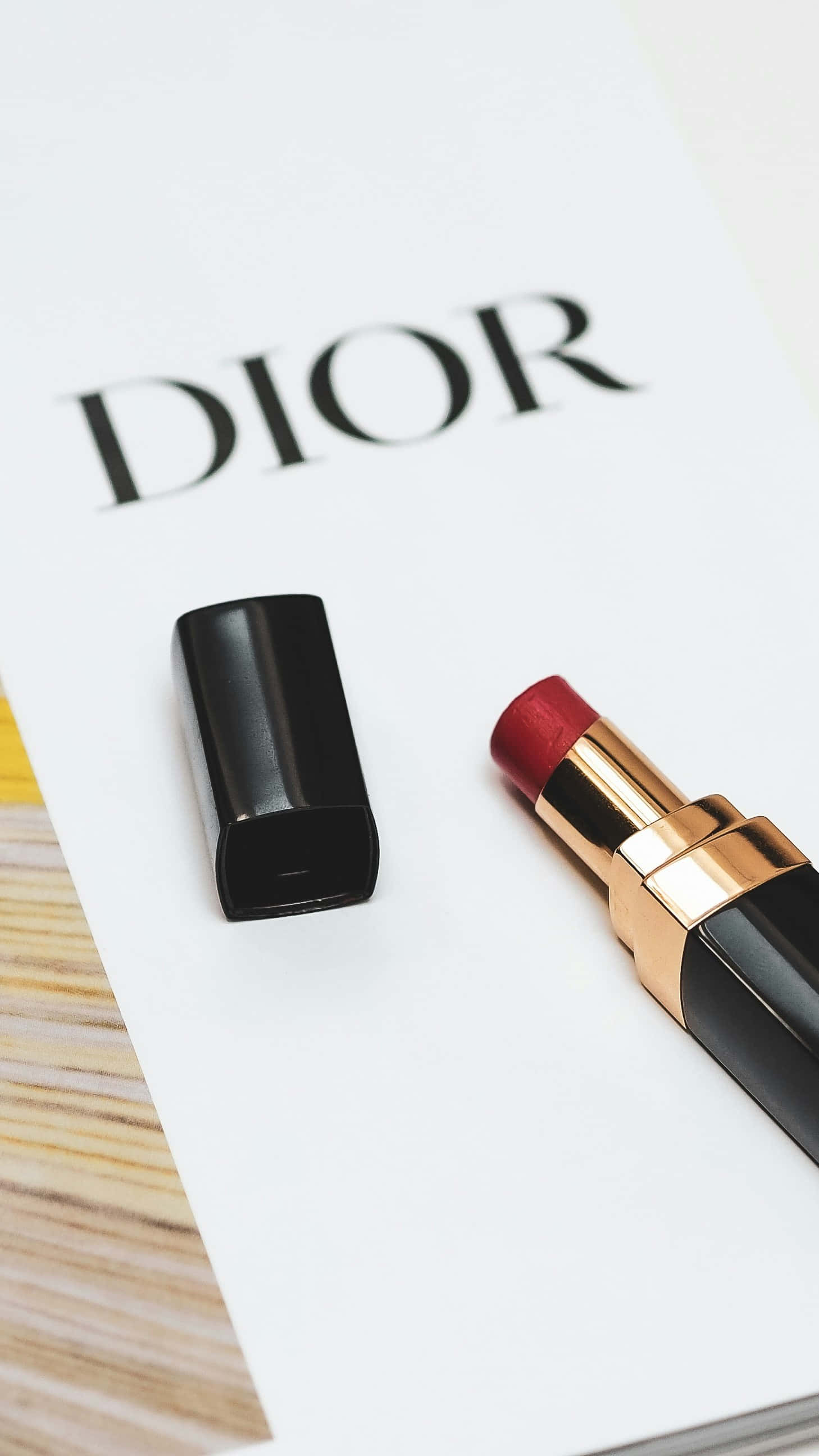Dior Branded Lipstickand Caseon White Wallpaper