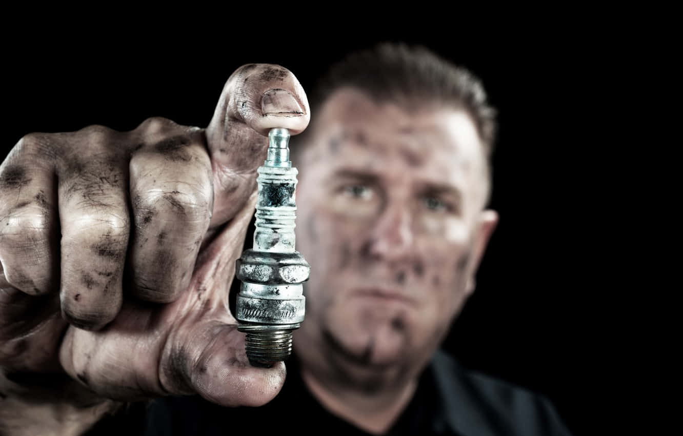 Dirty Man Holding Spark Plug Wallpaper