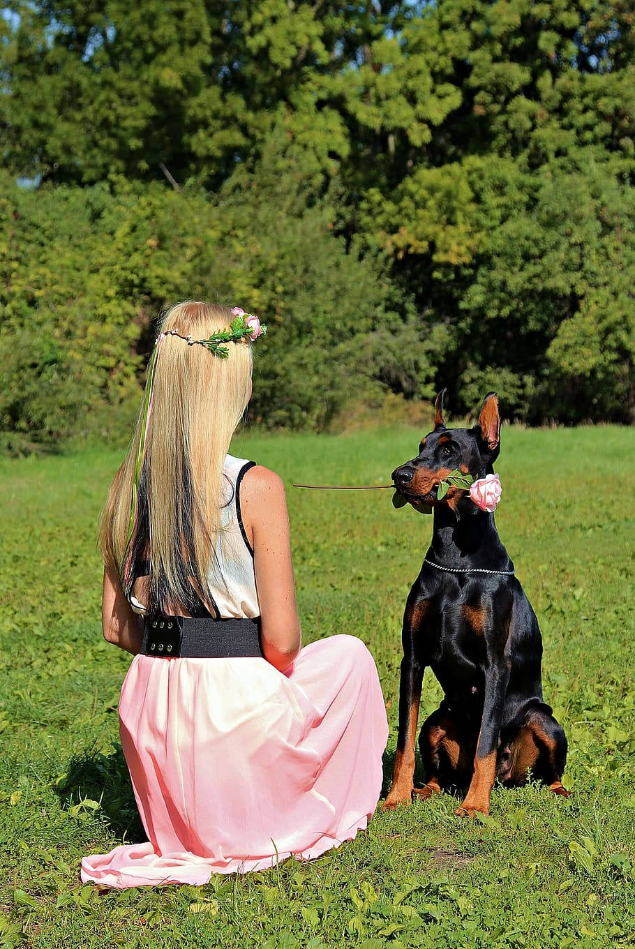 Dog And Girl Loving Each Other Wallpaper