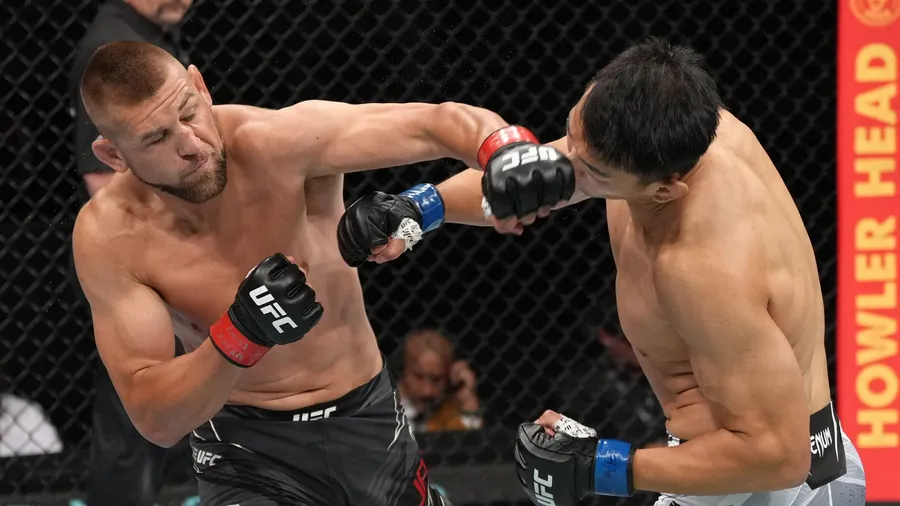 Dustin Jacoby In Action Against Da Un Jung In A Thrilling Mma Match Wallpaper