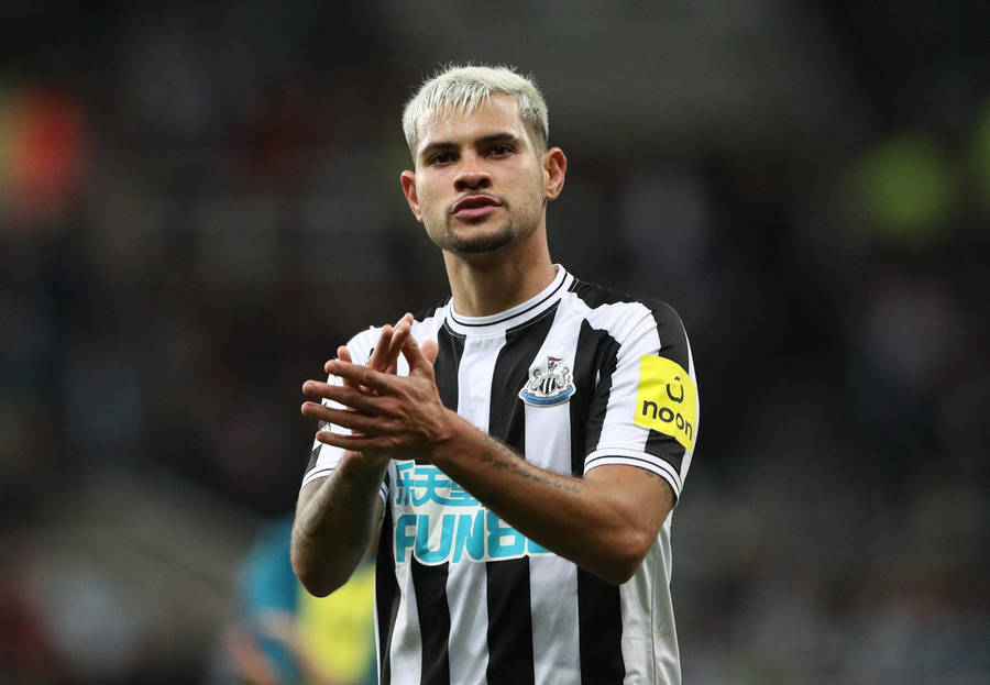 Dynamic Bruno Guimarães Cheers On The Field Wallpaper