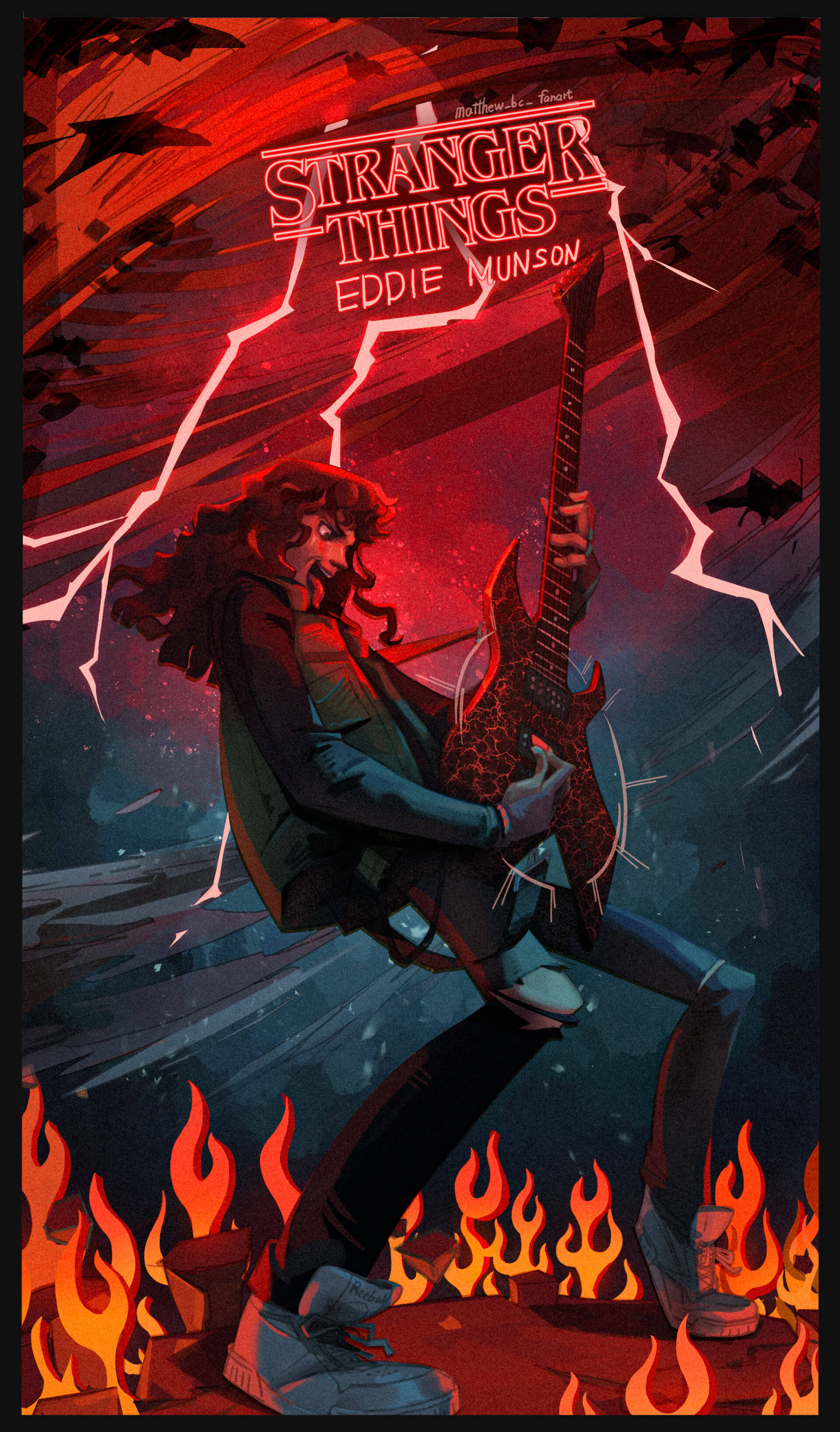 Eddie Munson Surrounded By Fire And Lightning Wallpaper