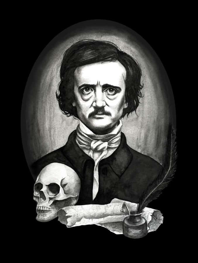 Edgar Allan Poe Portraitwith Skulland Quill Wallpaper