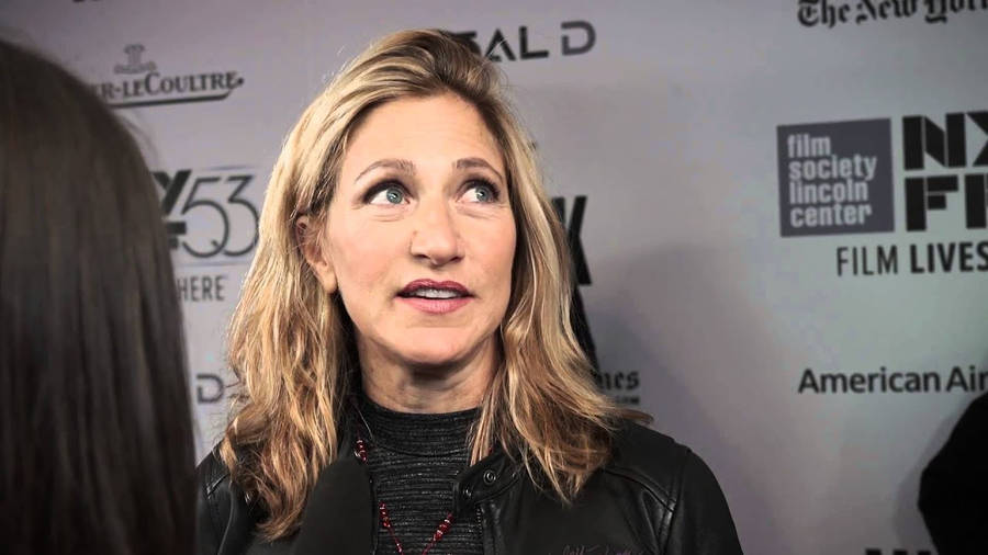 “edie Falco With An Intense Look In A Black Outfit” Wallpaper