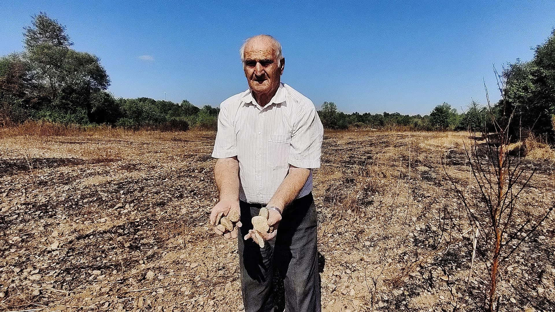 Elderly Farmer Standingin Field Wallpaper