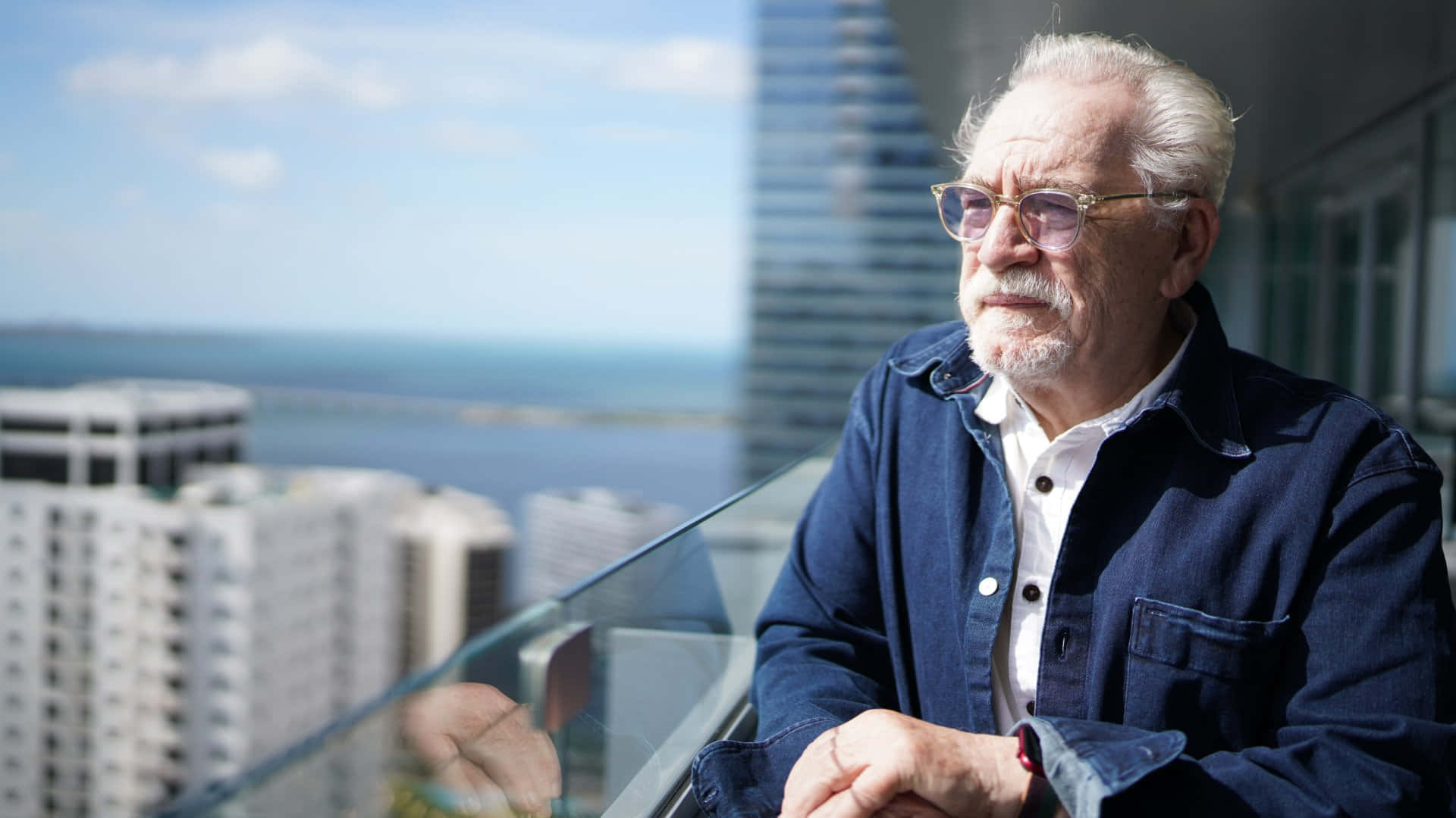Elderly Man Contemplating Cityscape Wallpaper