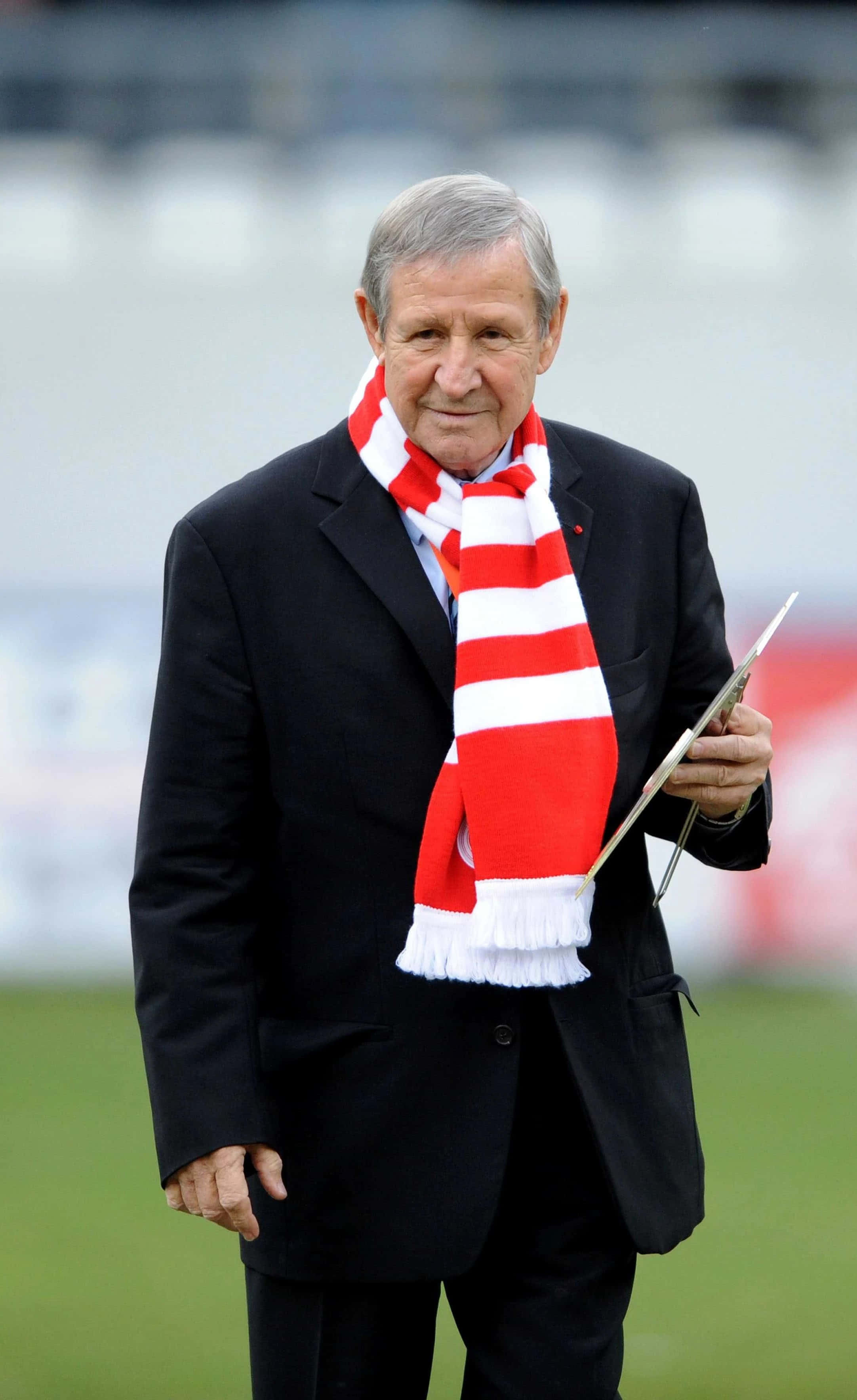 Elegant Manin Black Suitand Striped Scarf Wallpaper