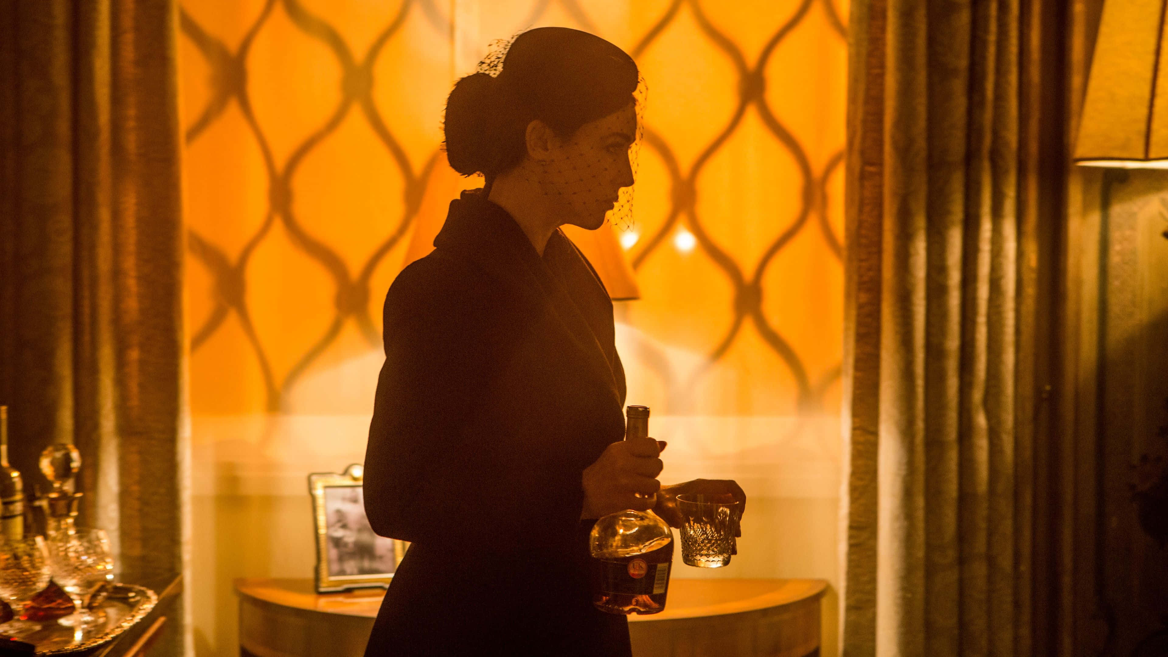 Elegant Woman Holding Decanter4 K Wallpaper
