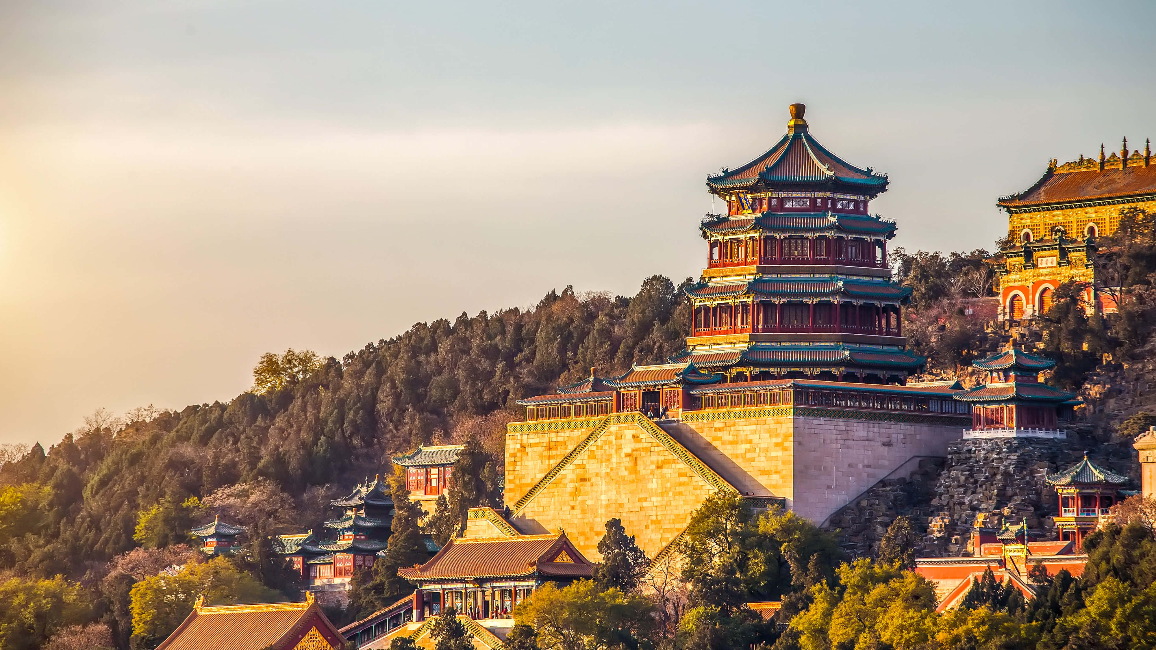 Enchanting Summer Palace Surrounded By Lush Green Trees Wallpaper