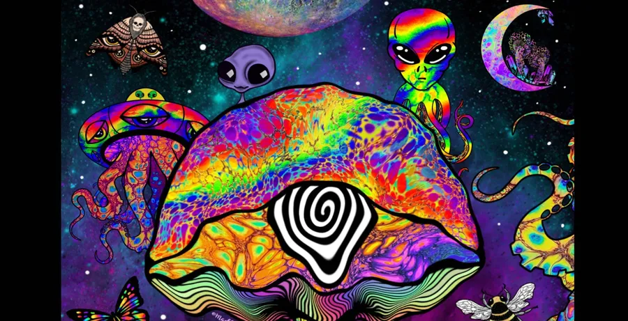 Enjoy The Colors Of The Trippy Mushroom! Wallpaper