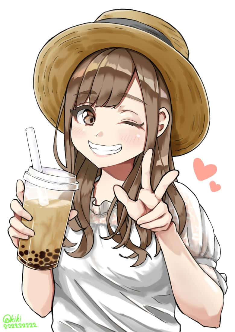 Enjoying A Frosty Treat – Bubble Tea Anime Wallpaper
