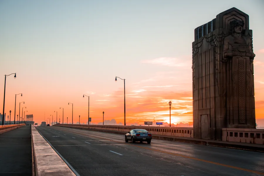 Enjoying The Sunset Over Cleveland’s Bridge Wallpaper