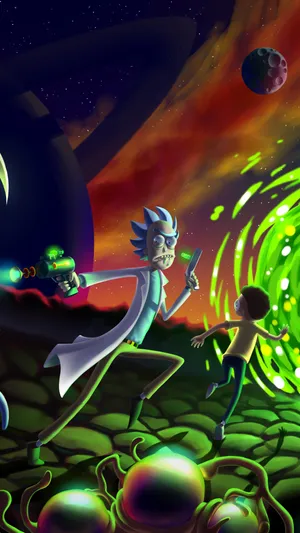 “enter The Wacky World Of Rick And Morty Through The Portal” Wallpaper