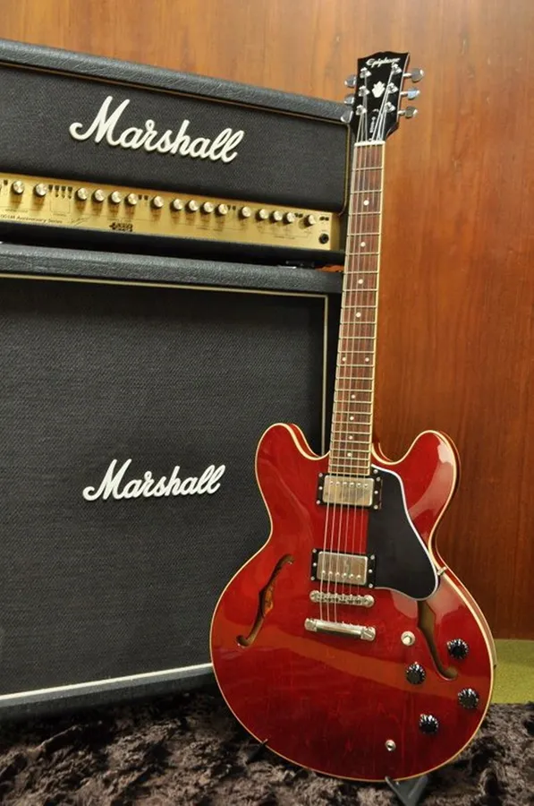 Experience The Sound Of A Vintage Gibson 335 Electric Guitar Wallpaper