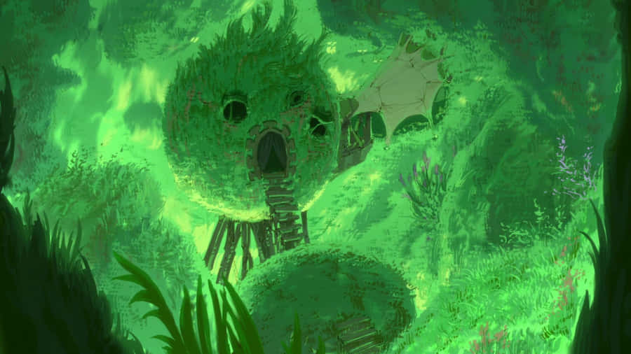 “explore The Magical Neko World Of Green Anime!” Wallpaper