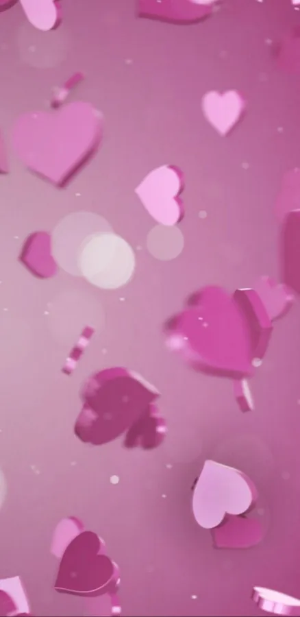 Falling Shiny Pink Hearts Iphone Wallpaper