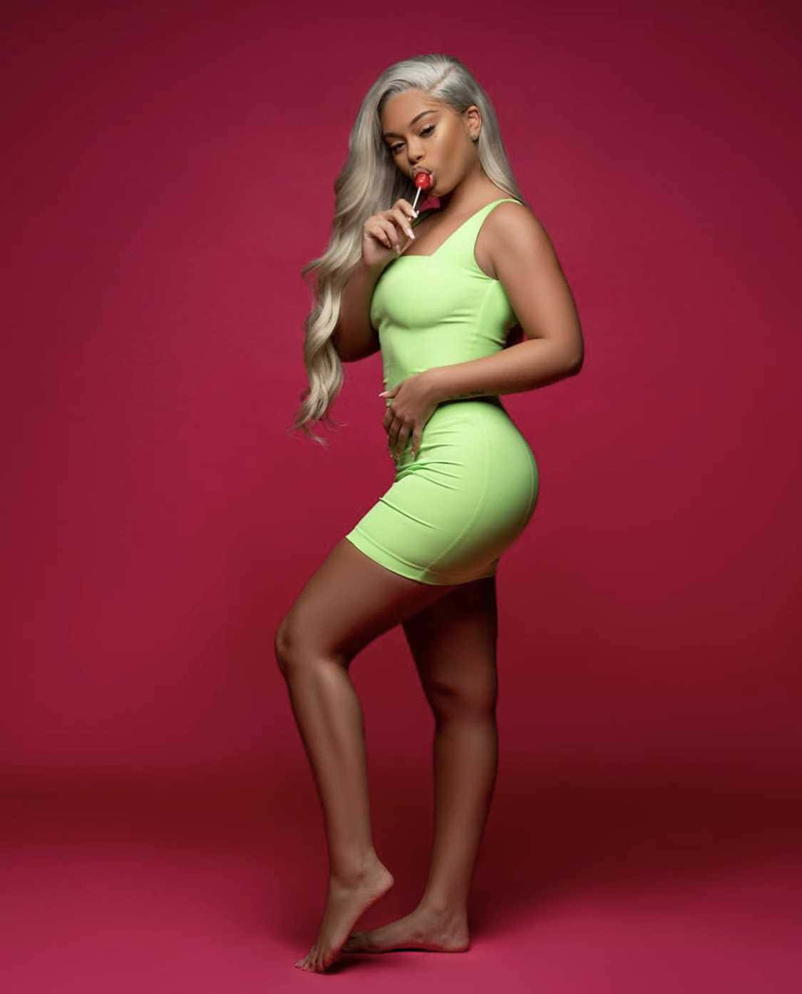 Fashionable_ Woman_in_ Lime_ Dress Wallpaper