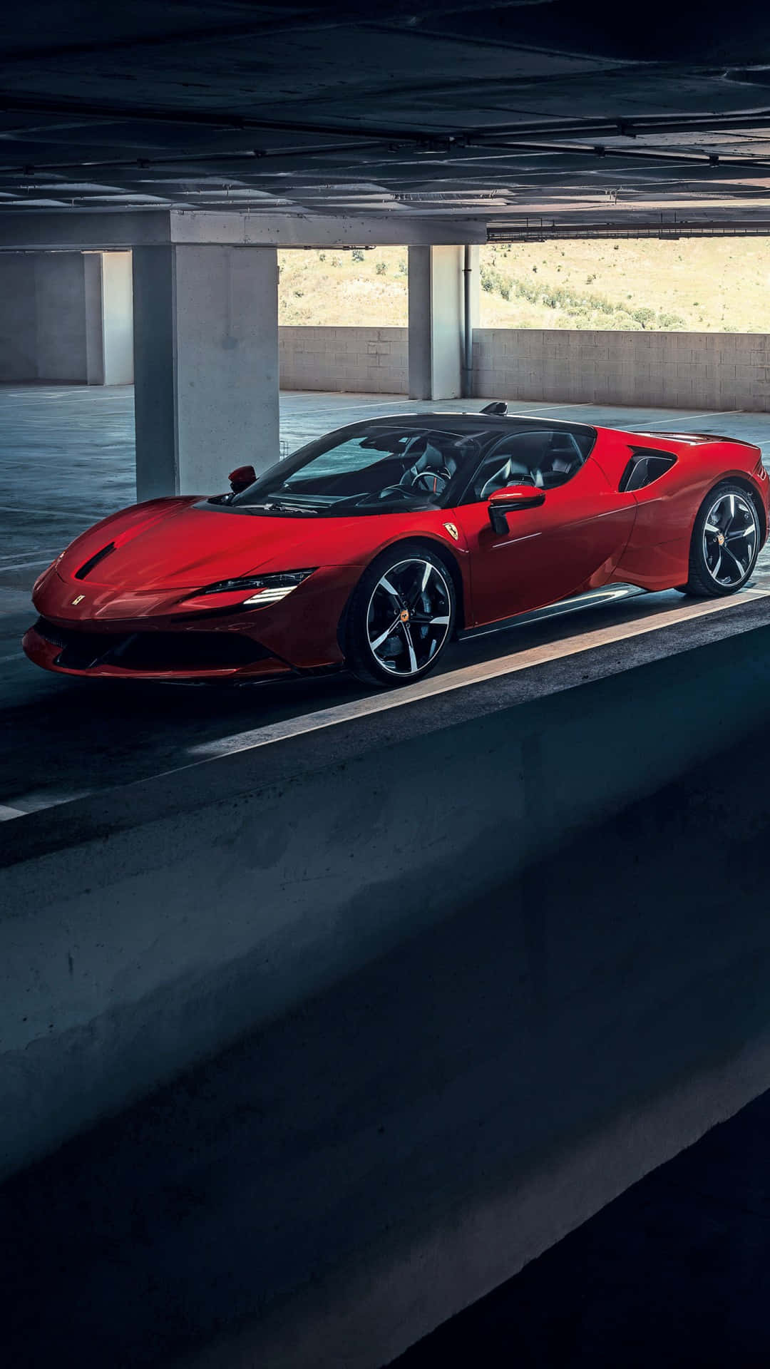 Ferrari 488 Spider – A Red Sports Car Driving In A Parking Garage Wallpaper