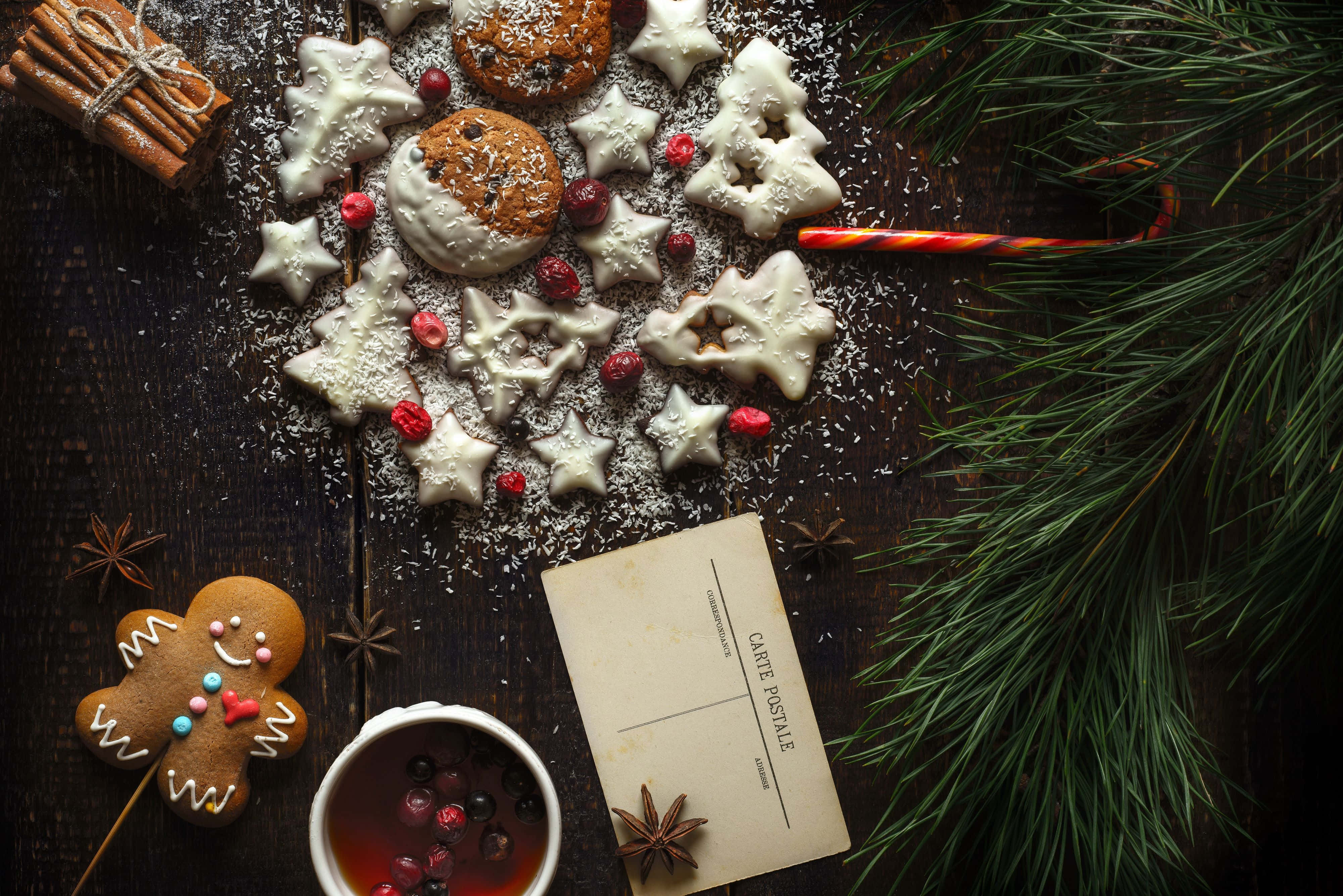Festive Christmas Cookiesand Hot Drink Wallpaper