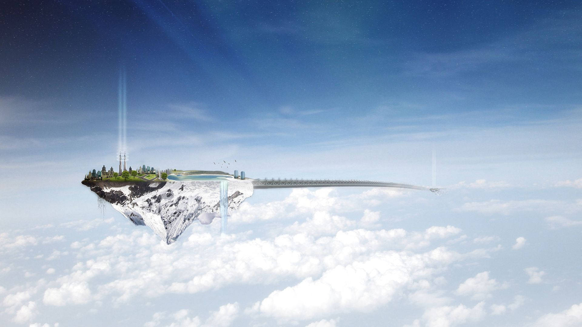 Floating Island With Connecting White Bridge Wallpaper