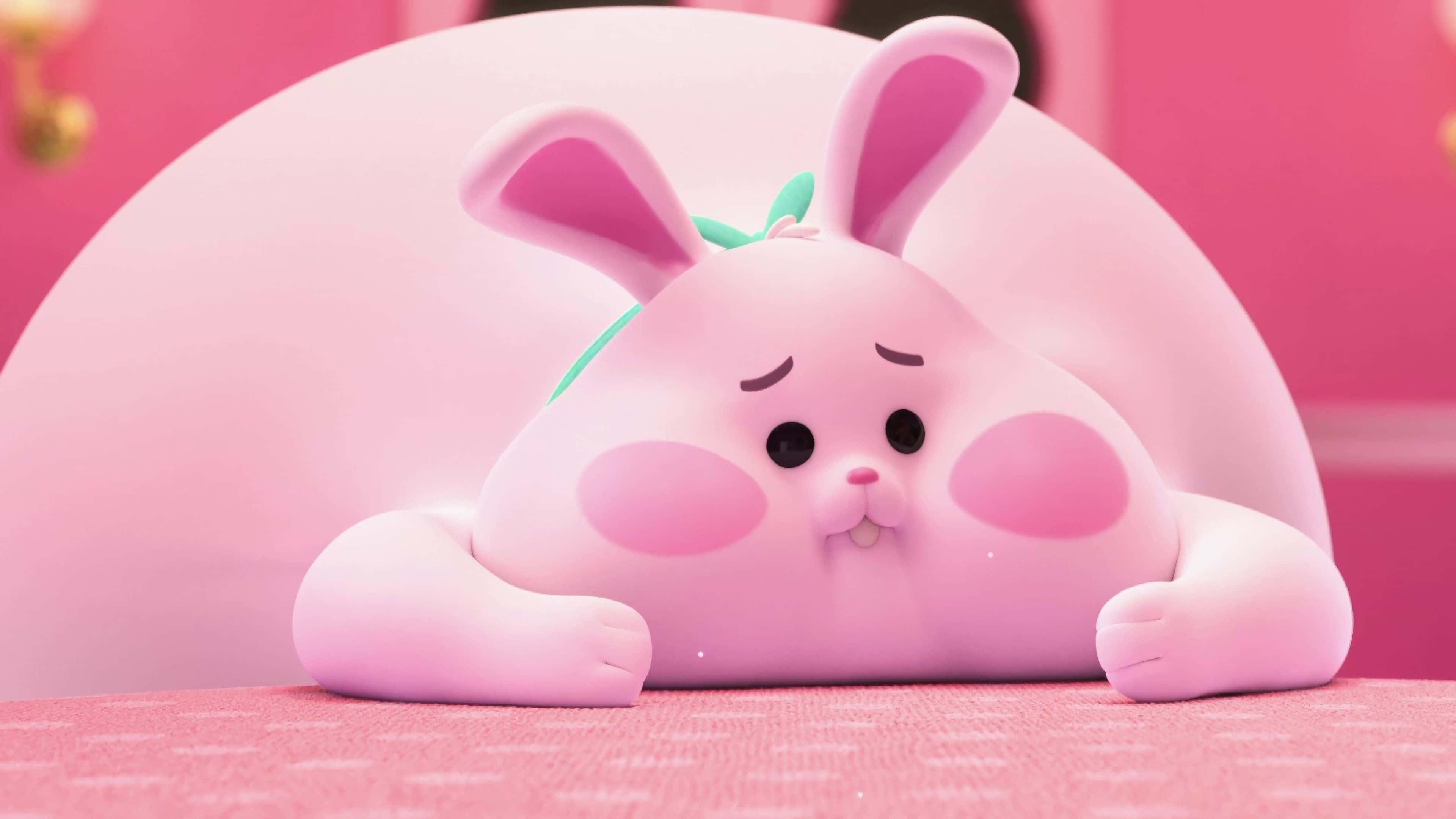 Fluffy Pink Bunny Grazing In The Meadow Wallpaper