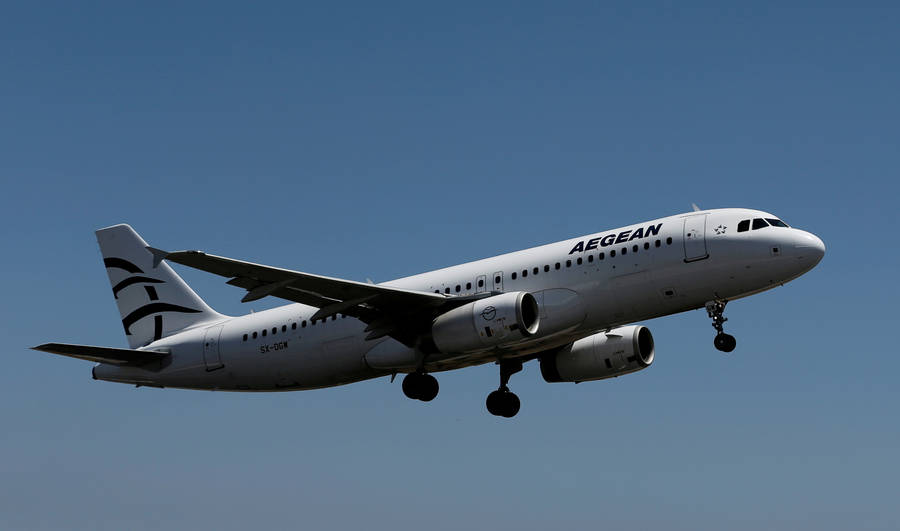 Flying Aegean Airlines Airbus A320-214 In Ombre Sky Wallpaper