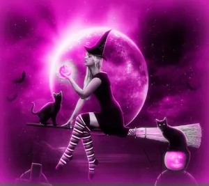 Flying Halloween Witch In Black Wallpaper
