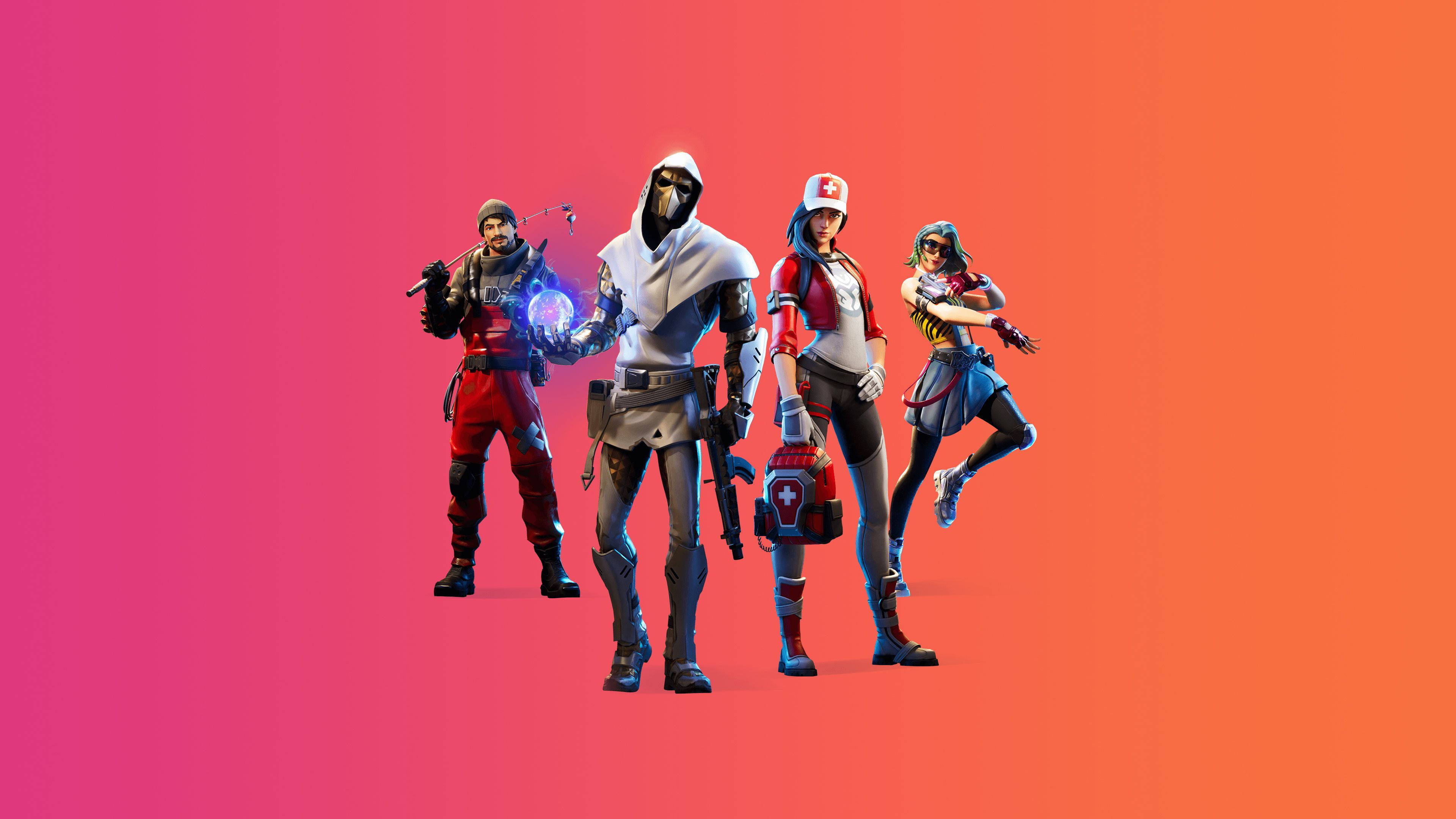Fortnite – A Group Of People Standing On An Orange Background Wallpaper