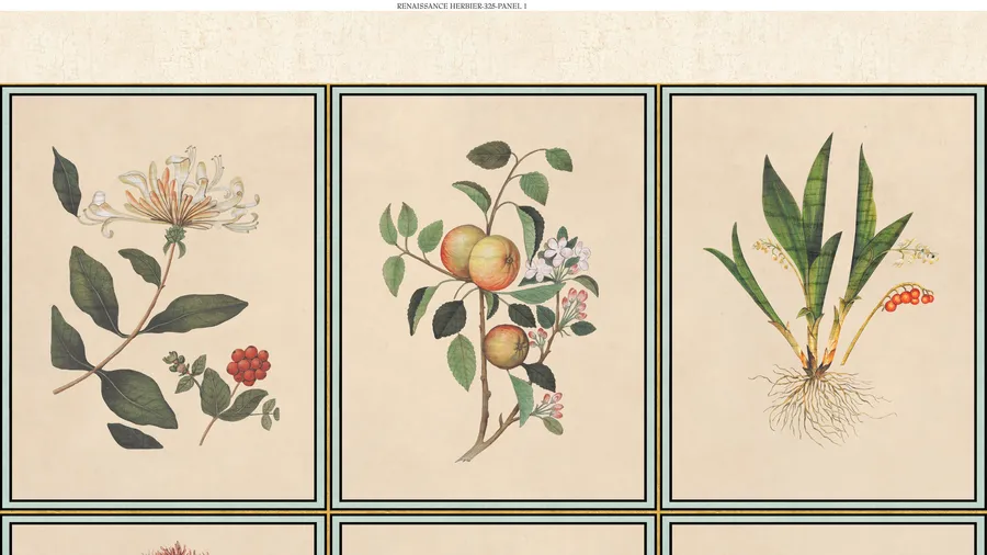 Four Botanical Prints With Different Plants And Flowers Wallpaper