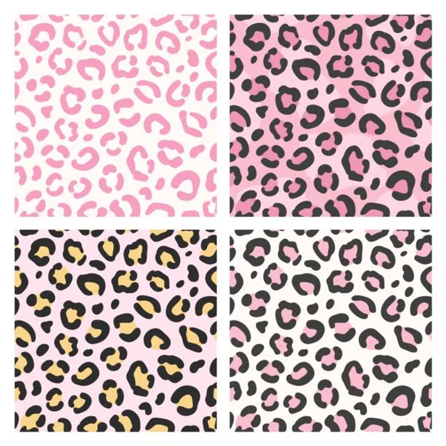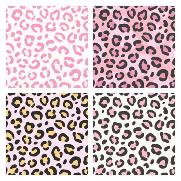 Four Leopard Print Patterns In Pink, Black And Yellow Wallpaper
