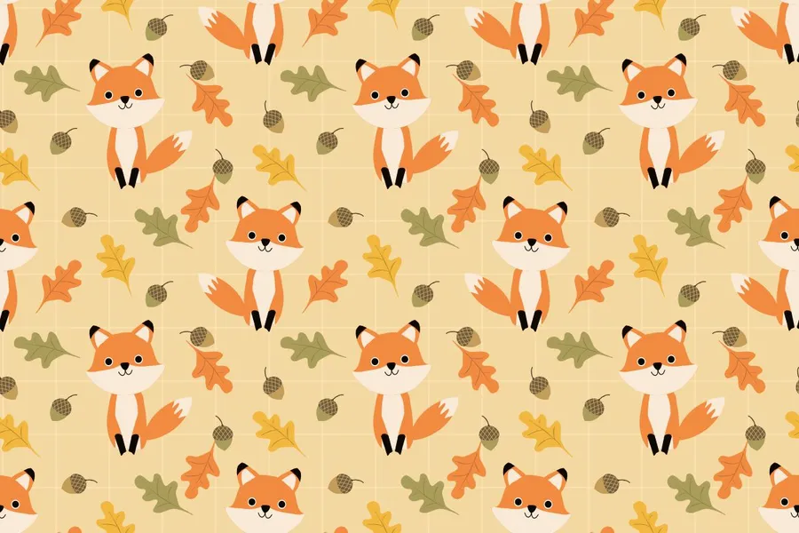 Foxes With Leaves And Leaves On A Yellow Background Wallpaper