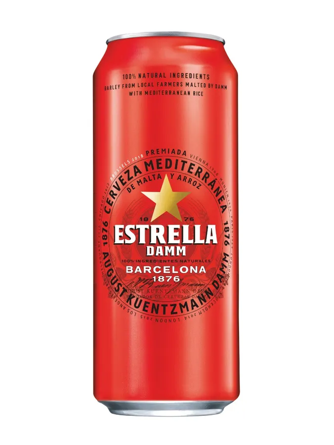 Fresh Estrella Damm Lager Beer In Vibrant Red Can Wallpaper