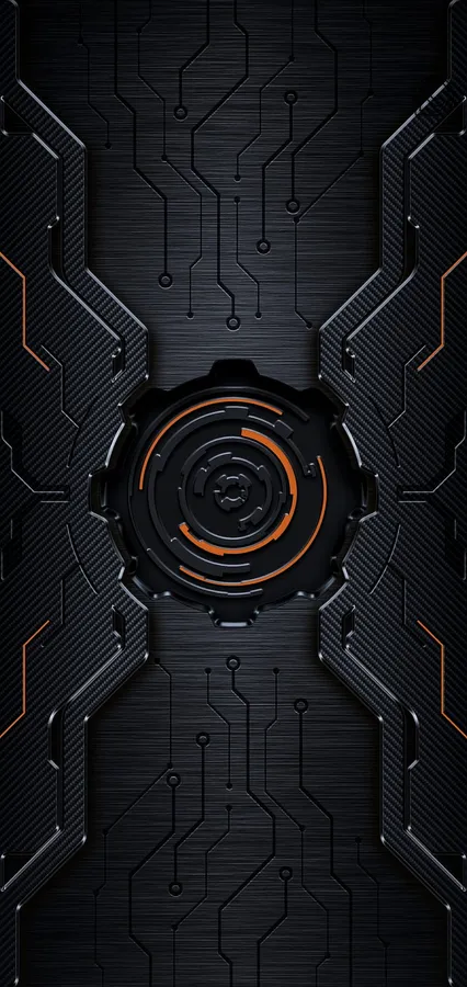 Futuristic Black Orange Cybercore Design Wallpaper