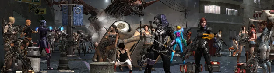 Gaming Dual Screen Background With Female Characters Wallpaper