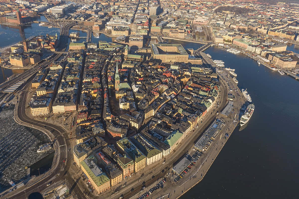 Gamla Stan Island Aerial View Wallpaper