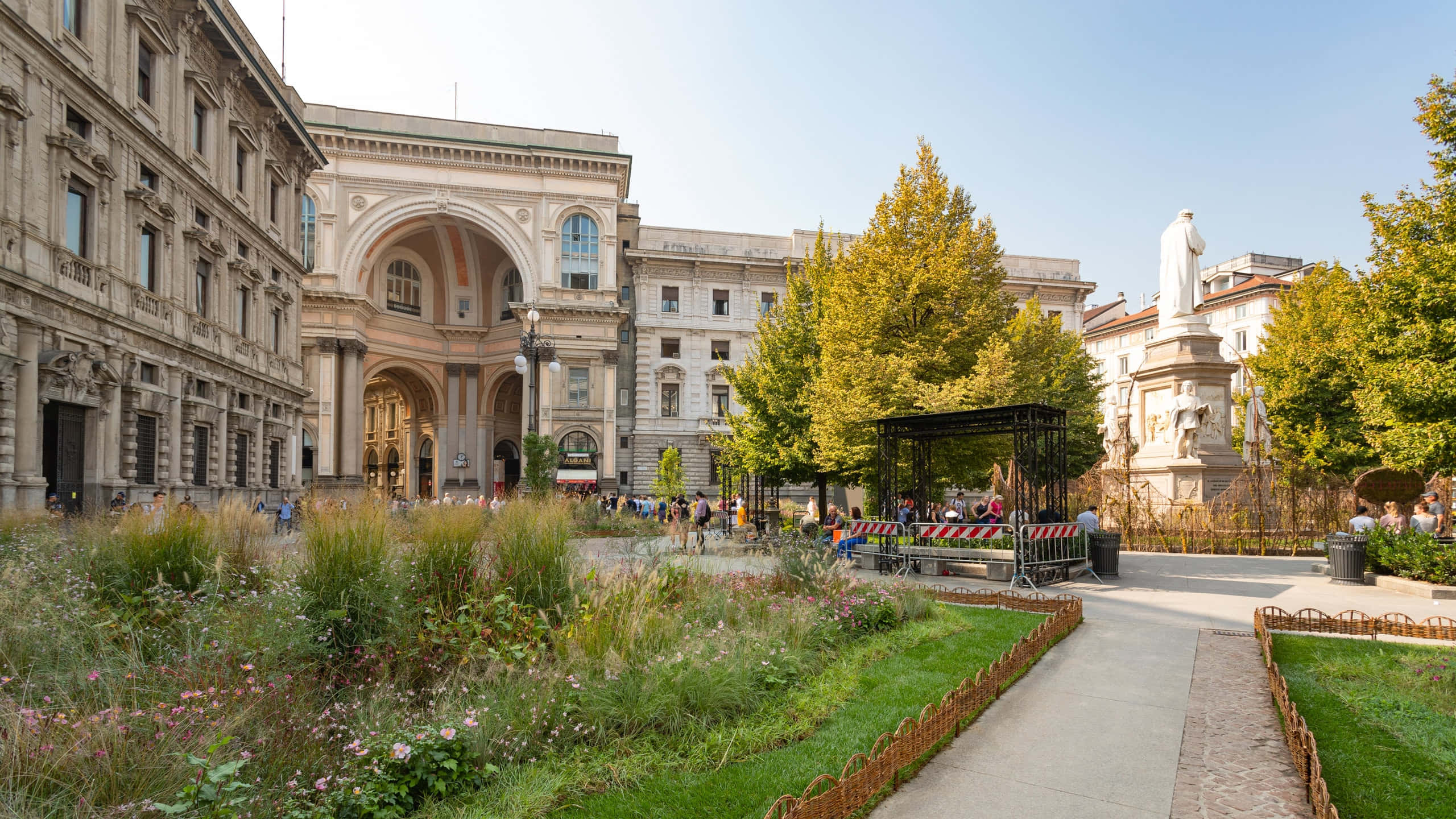 Garden With Statue Outside La Scala Opera House Wallpaper