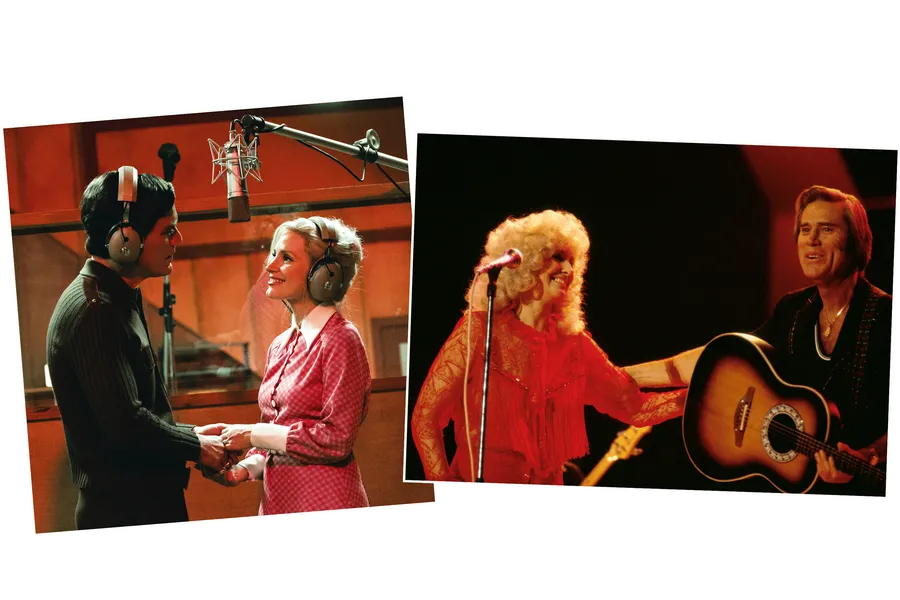George Jones Tammy Wynette Singing Together Collage Wallpaper