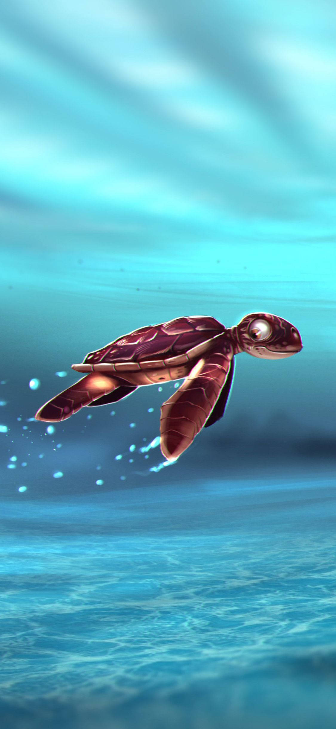 Get A Closer Look Of A Sea Turtle Underwater. Wallpaper