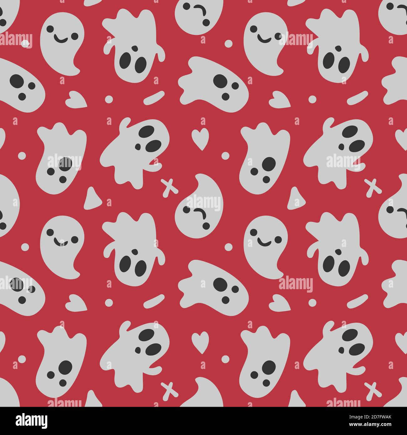 Ghosts And Hearts On A Red Background – Stock Image Wallpaper