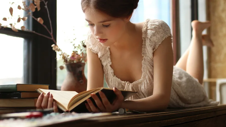 Girl Reading Books Near Window Wallpaper