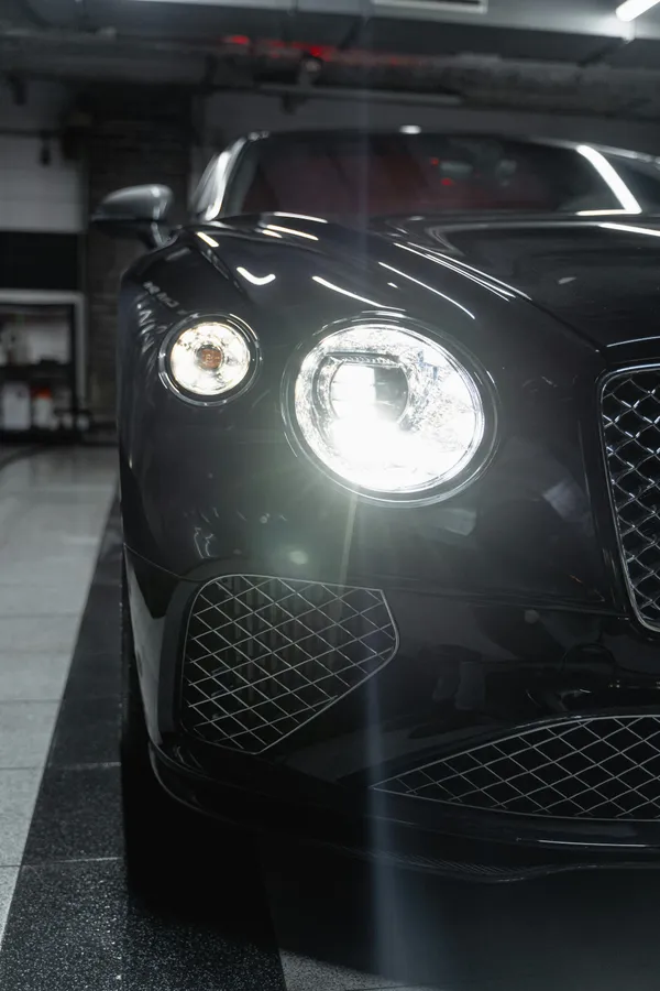 Gleaming Black Luxury Car Front View Wallpaper