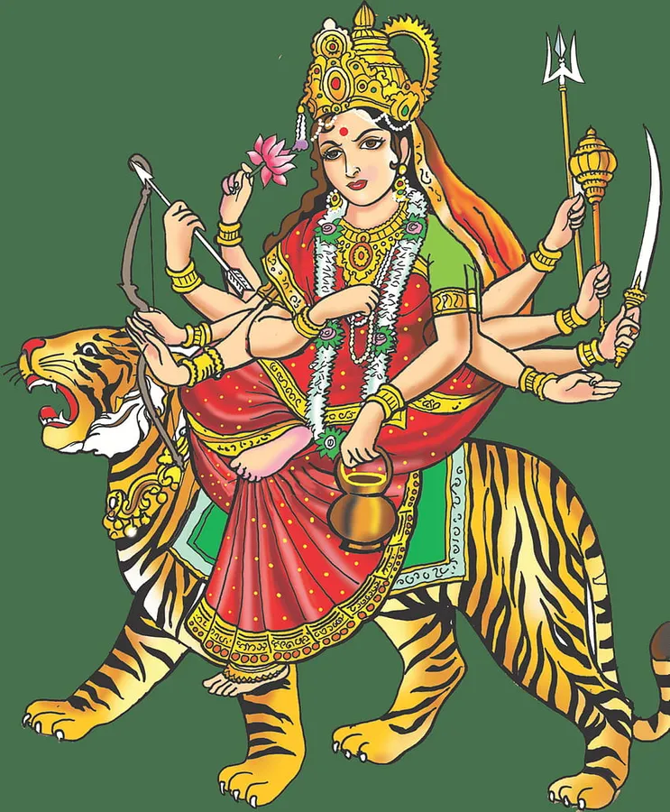 Goddess Durgaon Tiger Illustration Wallpaper