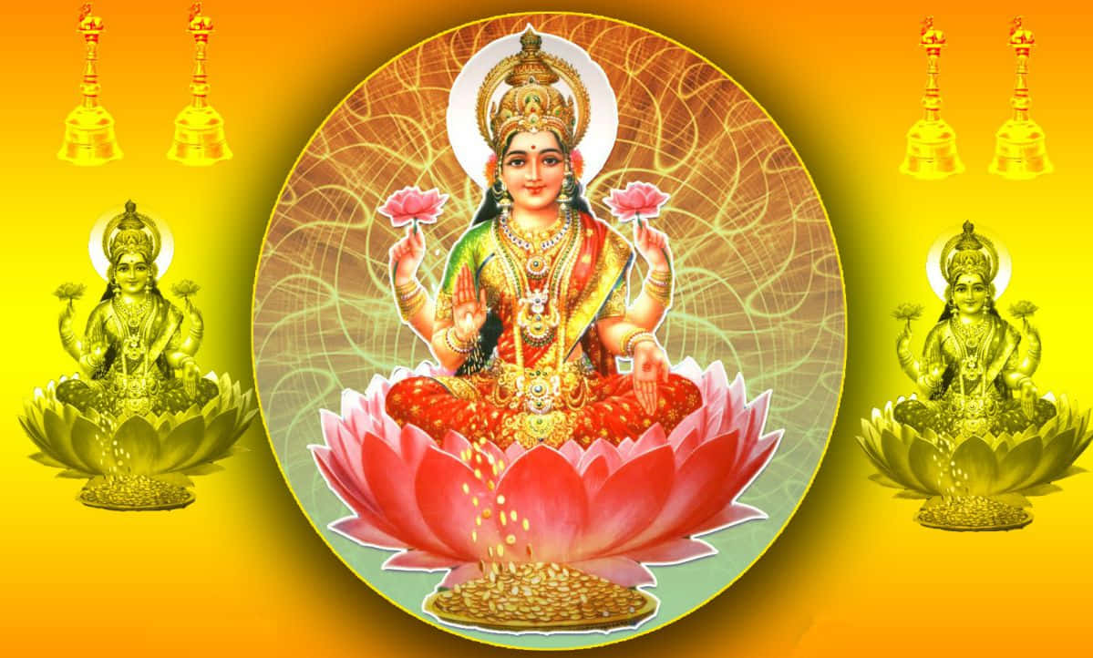 Goddess Mahalakshmion Lotus Wallpaper
