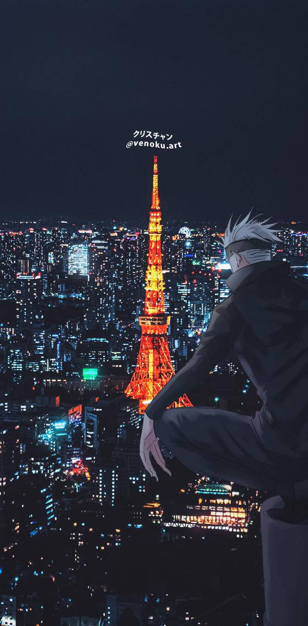 Gojo Sataru Watching Tokyo Tower Wallpaper