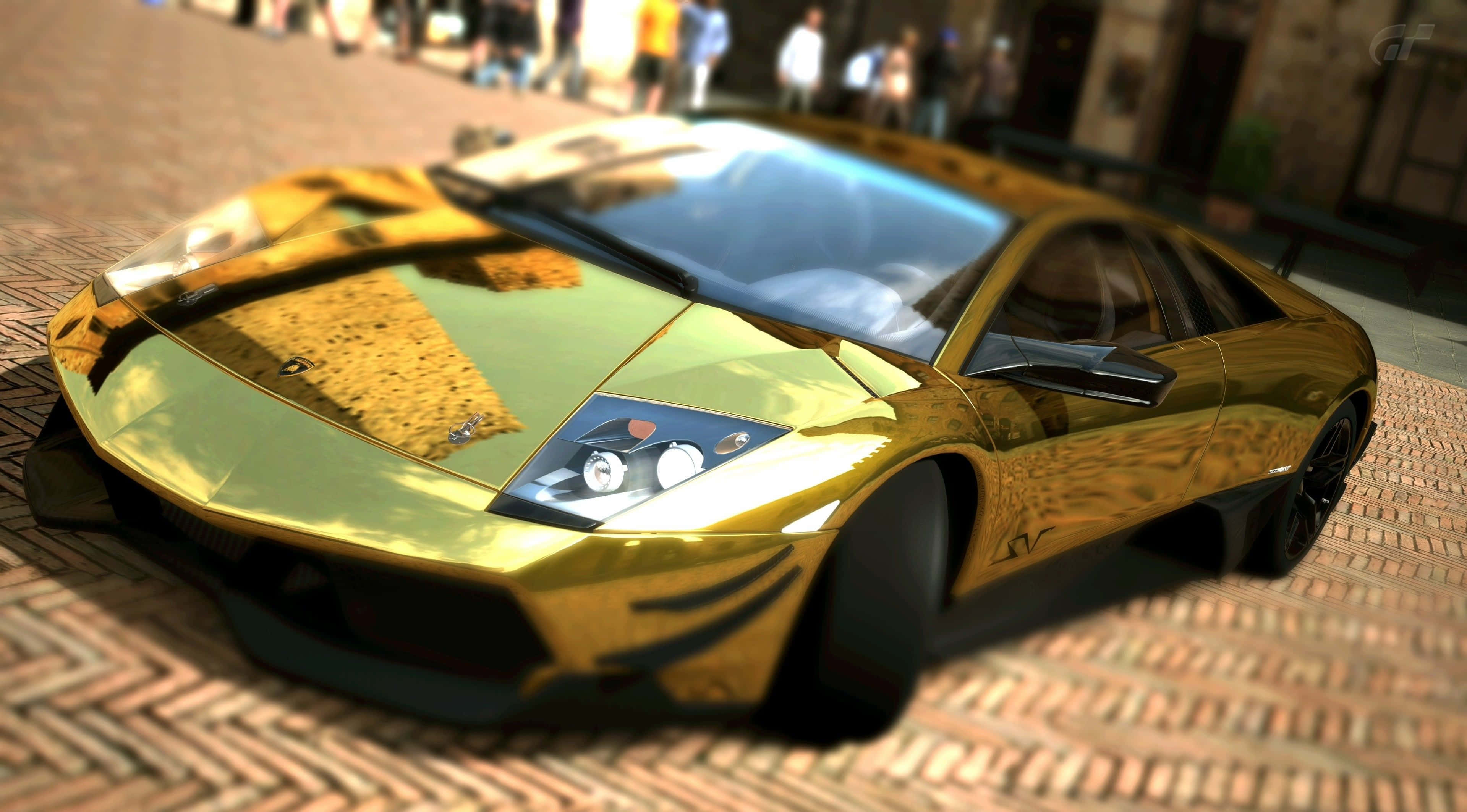 Gold Lamborghini Gliding Through The Street Wallpaper