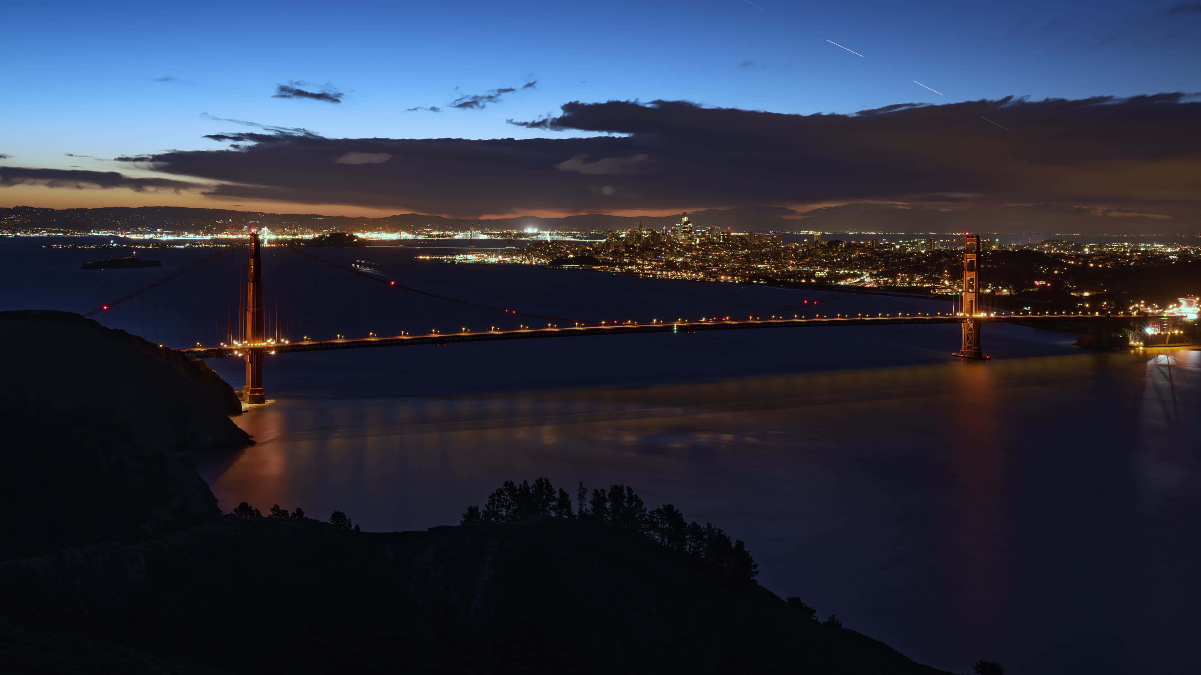 Golden Gate Bridge Nighttime Panorama Wallpaper
